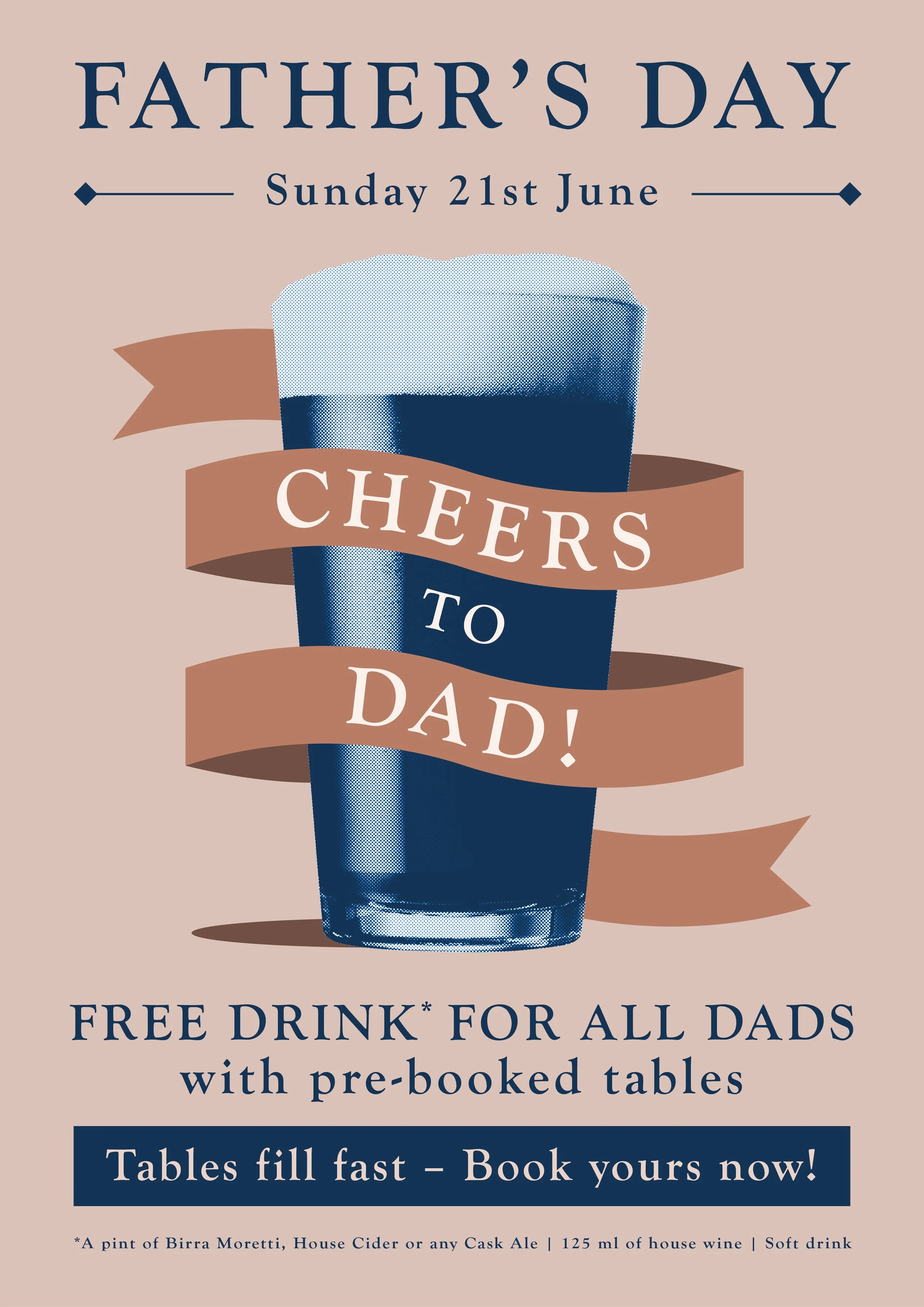 Free drink* for all Dads with pre-booked tables!